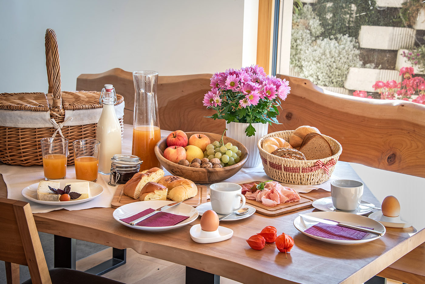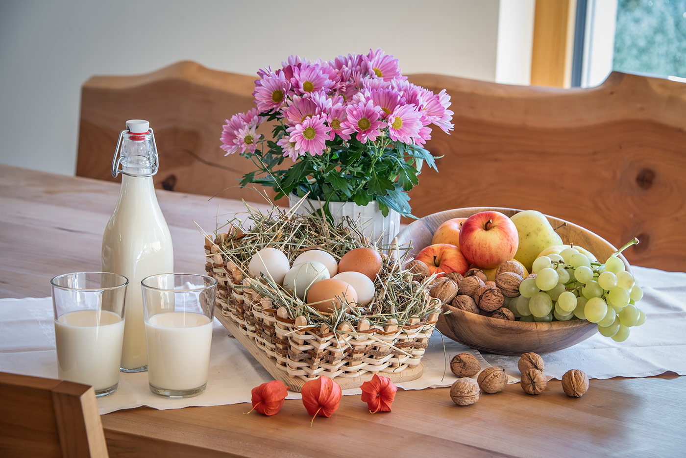 Wer den Tag in aller Ruhe beginnen möchte, kann am Turnerhof einen liebevoll vorbereiteten Frühstückskorb dazubuchen. Darin finden sich viele gute Dinge vom Hof und aus der Region: frische Heumilch, Eiern von unseren Hühnern, hausgemachtes Gebäck, Butter, selbst gemachte Marmelade, Omas Bienenhonig, Joghurt, Müsli, Käse und Wurst. Hier bleiben keine Wünsche offen!